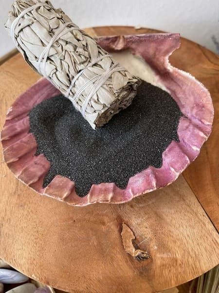 This sand is for use in burners, cauldrons, and shells to help absorb heat from charcoal or to extinguish smudge sticks.